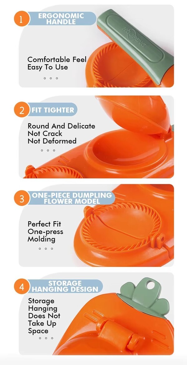 Feature: Different from traditional dumpling wrappers, the handle has a non-slip design, and the handle and bottom maintain a perfect distance to perfectly prevent your fingers from being pinched.